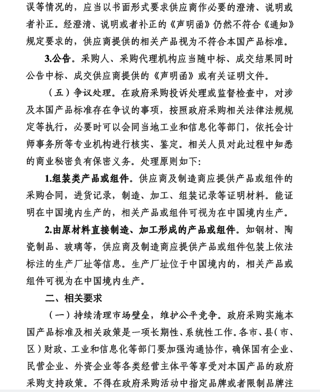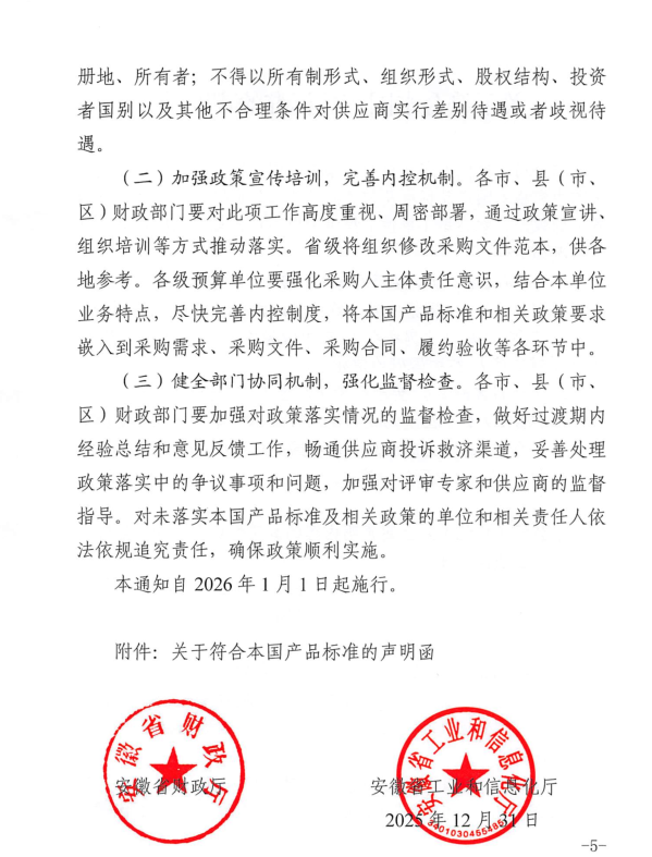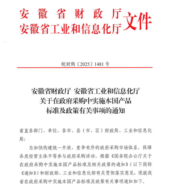 安徽省财政厅安徽省工业和信息化厅关于在政府采购中实施本国产品标准及政策有关事项的通知