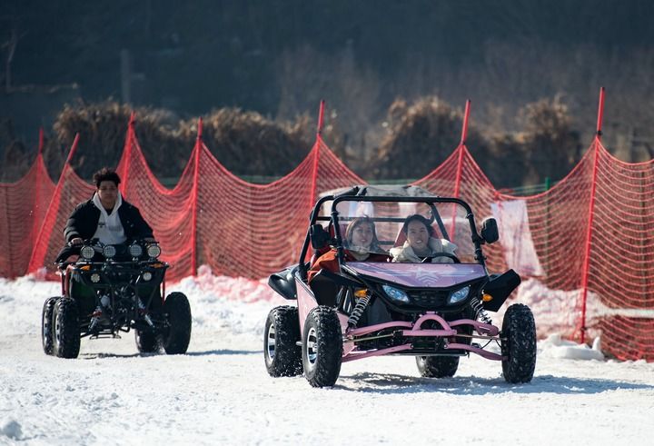 2025年1月19日,在河北省邯郸市复兴区东高河村滑雪场,游客在体验雪地越野车项目。新华社记者 王晓 摄